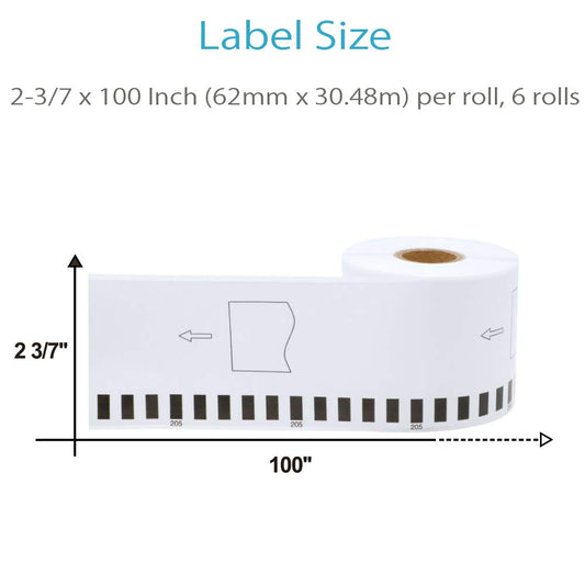 COLORWING Compatible Brother DK-2205 Continuous Paper Label Rolls 2-3/7'' x 100'(62mm x 30.48m) Use with Brother QL Label Printer QL-500 QL-570 QL-700W QL-800 QL-810W, 6 Rolls+1 Frame