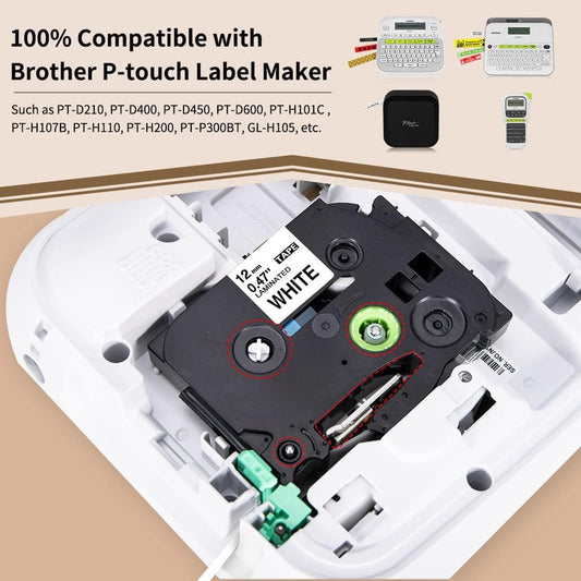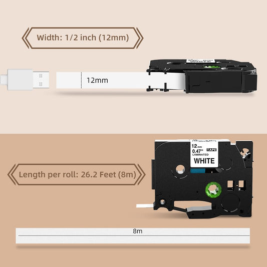 10x TZe-231 Replacement for Brother Label Tape 12mm Black on White TZe231 AZe-231 P-Touch 12mm 0.47 Labelling Tape Cassette for Brother PT-H110 Label Maker