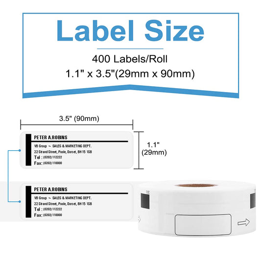 6 Rolls Compatible with Brother DK-1201 Standard Address Labels Die-Cut 1.1'' x 3.5'' (29mm x 90mm) for QL 600 550 810w Label Printers, 400 Labels/Roll