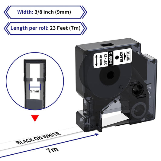 6-Pack Compatible with Dymo 41913 (40913) 3/8 Inch D1 Label Tape Black on White 9mm Refills S0720680 for DYMO LabelManager 160 280 360D Label Maker COLORPOP