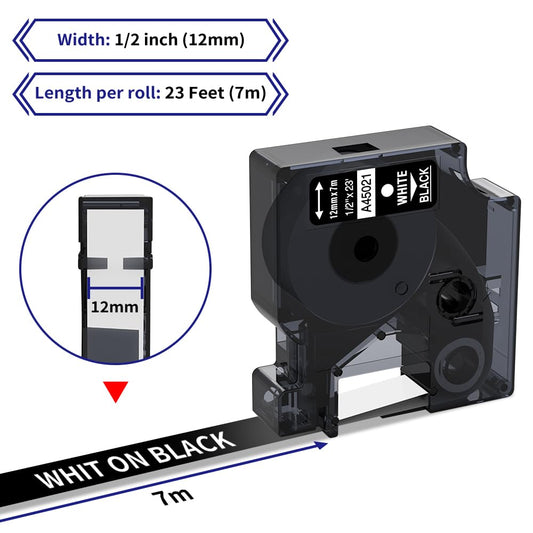 COLORWING Compatible with Dymo White on Black D1 Label Tape 45021 Standard Label Maker Refills d1, 1/2Inch x 23Ft, S0720610 for DYMO LabelManager 160 210D 280 360, 3-Pack