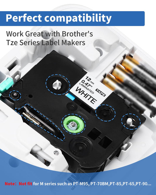 6 x Replacement for Brother P Touch Tape 12mm 0.47 Laminated TZe-231 TZ231 Labelling Tape Cassette for Brother PT-H110 H101C 1000 PT-D210VP Tape Black on White