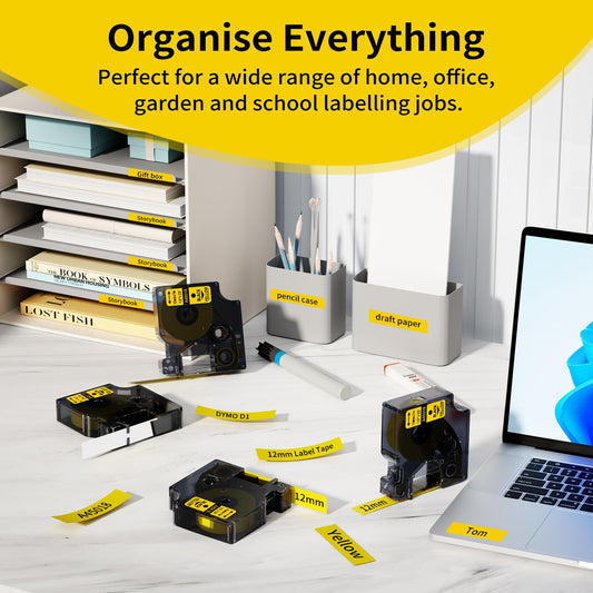 COLORWING Compatible DYMO D1 Label Tape Black on Yellow 45018 S0720580 Replace for DYMO Label Maker Refill D1, 1/2 Inch x 23 Ft, for Dymo LabelManager 160 420P 210D 280 360D PnP, 3-Pack
