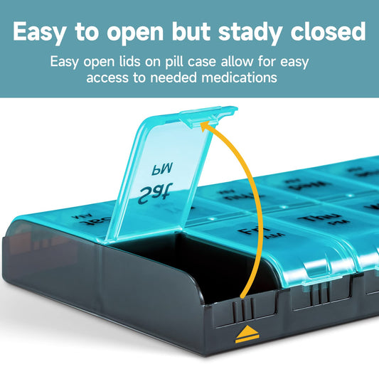 7 Day Extra Large Pill Organizer 2 Times a Day, Weekly Pill Box Twice a Day, XL AM PM Pill Case, Oversized Daily Medicine Organizer for Vitamin, Big Pill Container, Medication Dispenser (Cyan)