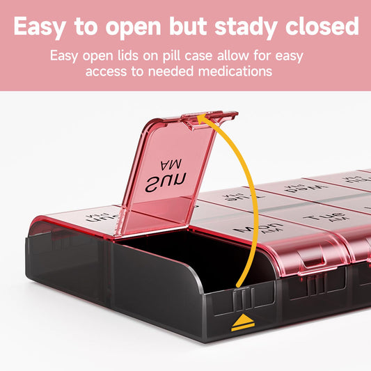 COLORWING AM PM Extra Large Pill Organizer, XL 7 Day Pill Organizer 2 Times a Day, Weekly Daily Pill Case, Day Night Oversized Medicine Box, Vitamin Holder, Big Pill Container (Pink)