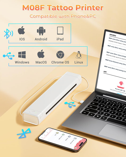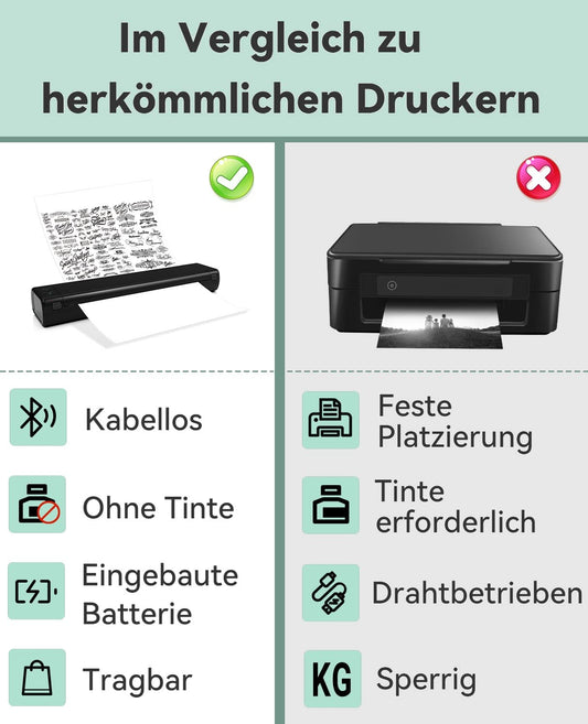 COLORWING Inkless Printer - M832 Thermal Printer A4, Mobile Printer, Travel Printer, Portable Thermal Printer, No Ink Printer, Adjustable Printing Size, 304DPI High-Definition