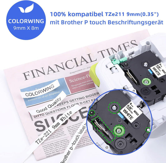 COLORWING Ersatz für Brother 9mm TZe-221 Tz-221 TZe221 Schriftband Laminated Tape Cassette für Brother P touch H100LB H105 H110 H101C D200 D400 D600 E100, Schwarz auf Weiß, 3er