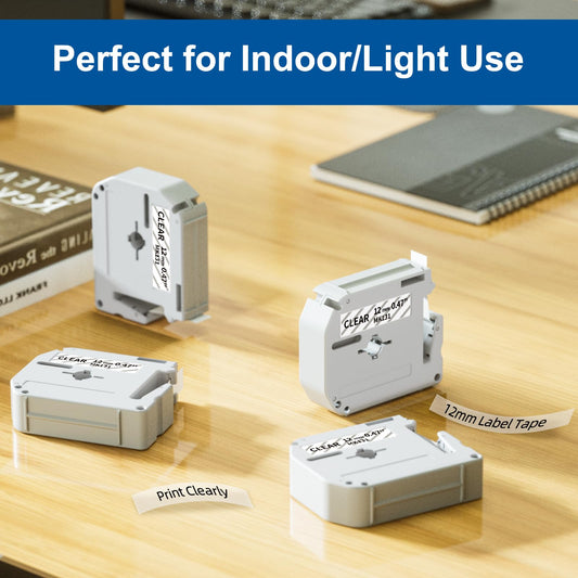 COLORWING M-K131 Clear Tape Compatible Brother P Touch M Tape Clear 12mm 0.47'' M-131 MK131 for Brother Ptouch PT-M95 PT-90 PT-70 PT-65 PT-85 PT-45 Label Maker Refills, 4-Pack