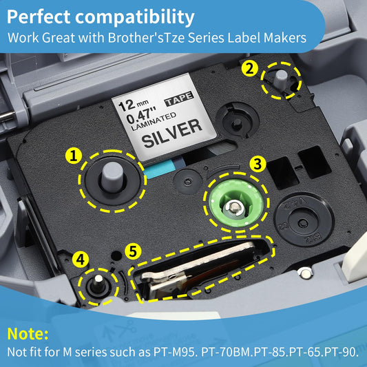 COLORWING kompatibel für Brother Schwarz auf Silber TZe-931 TZe931 P-Touch Schriftband 12 mm 0.47 Silver Laminiert Bänder Für Ptouch H110 H105 1000 1005 1280 D400 Cube, 3x