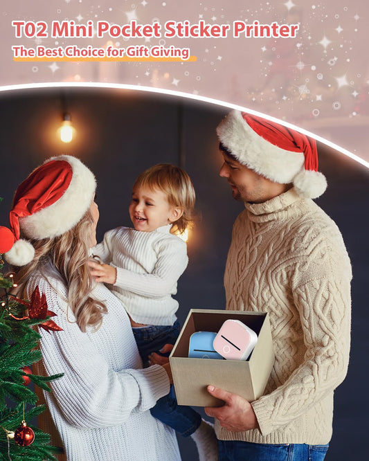 COLORWING T02 Thermal Sticker Printer with 3 Rolls Sticker Paper, Print Pods Mini Printer, Bluetooth Wireless Inkless Printer for Scrapbook and Journal, Compatible with Android and iOS - Pink