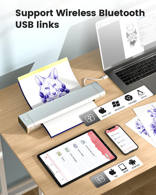 COLORWING Tattoo Transfer Stencil Machine,Thermal Tattoo Wireless Printer,Portable Tattoo Stencil Printer Copier Machine,Inkless Bluetooth Travel Printers Compatible with Android iOS Phone &Laptop