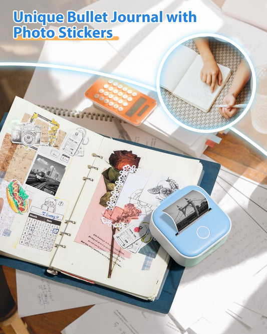 COLORWING T02 Thermal Sticker Printer, Print Pods Mini Printer, Bluetooth Wireless Inkless Printer for Scrapbook and Journal, Compatible with Android and iOS - Blue