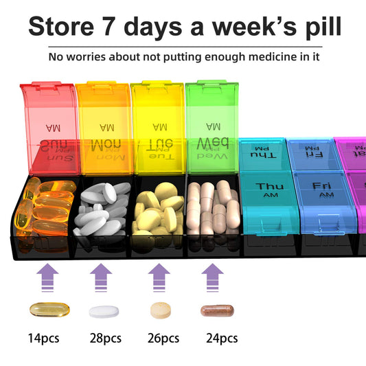 Extra Large Pill Organizer 2 Times a Day, Weekly XL AM PM Pill Case, 7 Day Pill Box Twice a Day, Oversized Daily Medicine Organizer for Vitamins, Big Pill Container, Medication Dispenser (Rainbow)