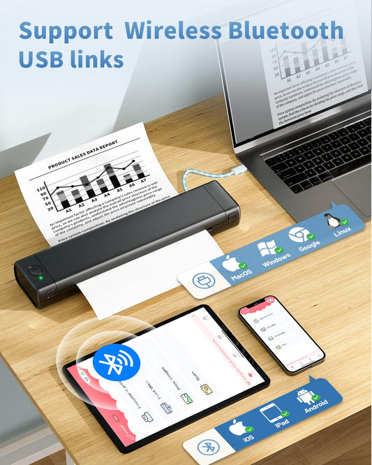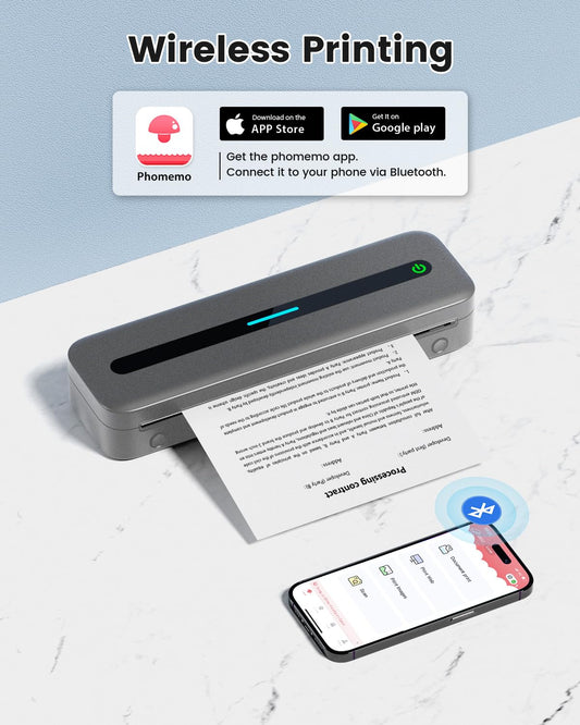 Imprimante Portable Wireless Travel - COLORWING M08F - A4 Bluetooth Thermal Printer for Mobile Office, Support for 8.26 ''X 11.69'' A4 Size Thermal Paper, Compatible with Android and iOS Phones