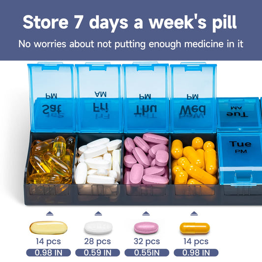 Extra Large Pill Organizer 2 Times a Day, Weekly XL AM PM Pill Case, 7 Day Pill Box Twice a Day, Oversized Daily Medicine Organizer for Vitamins (Blue)