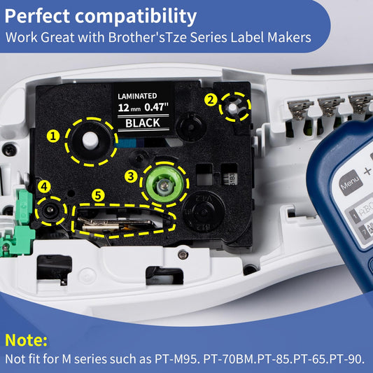 Compatible Dymo Letratag Label Maker Refills for Dymo 200B Plus LT100H LT100T QX50 Plastic Label Tape 91331 91332 91333 91334 91335,12mm x 4m(1/2'' x 13')