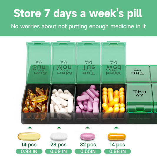 Extra Large Pill Organizer 2 Times a Day, XL 7 Day Pill Box AM PM, Jumbo Weekly Pill Case, Daily Night Oversized Medicine Organizer, Vitamin Holder, Big Pill Container, Twice a Day Pill Organizer