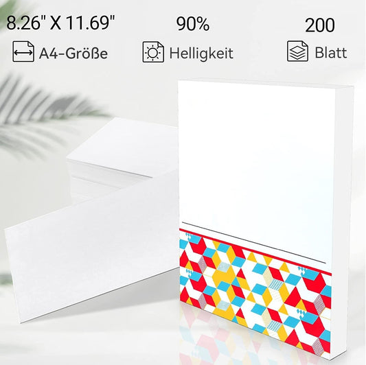 Thermopapier A4-200 Blatt papier thermique - Papiers thermique - Compatibile avec phomemo and COLORWING M08F Imprimantes portables (210mmx297mm, 200 feuilles)