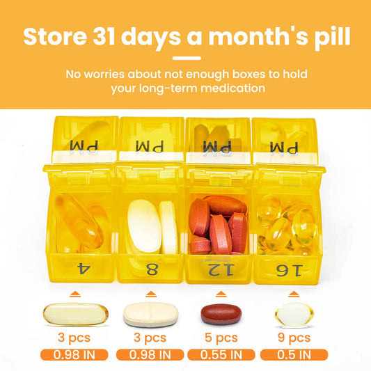 Monthly Pill Organizer 2 Times a Day, One Month Pill Box AM PM, 30 Day Pill Case Small Compartments to Hold Vitamin and Travel Medicine Organizer, 31 Day Pill Organizer, 4 Week Pill Cases (Yellow)