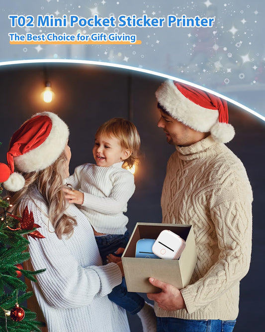T02 Printemped, Sticker Printer with 3 Rolls Sticker Paper, Mini Printer for School Notes, Inkless Portable Printer, Compatible with phomemeo App, Blue