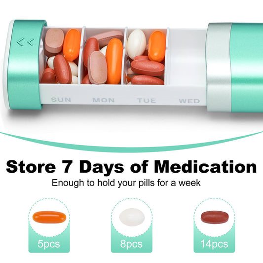 Travel Weekly Pill Organizer, Colorwing Stylish Pretty Pill Box 7 Day, Cute Daily Pill Case Holder to Medication, Supplements, Tablets, Great for Office, Trip, Gym (Green)