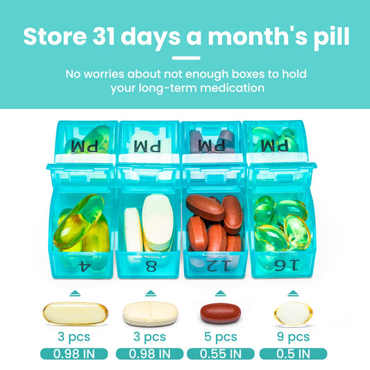 Monthly Pill Organizer 2 Times a Day, One Month Pill Box AM PM, 30 Day Pill Case Small Compartments to Hold Vitamin and Travel Medicine Organizer, 31 Day Pill Organizer, 4 Week Pill Cases(Cyan)