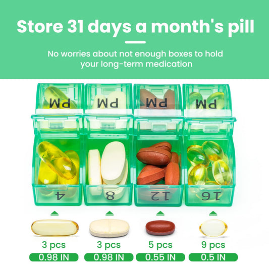Monthly Pill Organizer 2 Times a Day, One Month Pill Box AM PM, 30 Day Pill Case Small Compartments to Hold Vitamin and Travel Medicine Organizer, 31 Day Pill Organizer, 4 Week Pill Cases (Green)