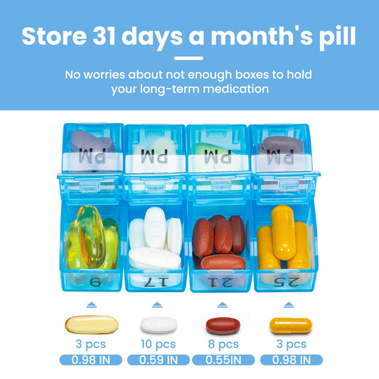Monthly Pill Organizer 2 Times a Day, 30 Day Pill Box Organizer, One Month AM PM Pill Case Small Compartments to Hold Vitamin and 31 Day Travel Medicine Organizer, 4 Week Pill Cases (Blue)