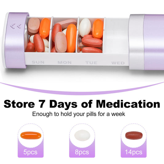 Travel Weekly Pill Organizer, Colorwing Stylish Pretty Pill Box 7 Day, Cute Daily Pill Case Holder to Medication, Supplements, Tablets, Great for Office, Trip, Gym (Purple)